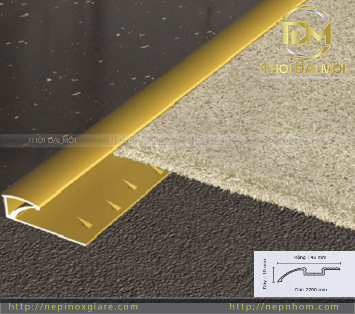 NẸP THẢM Nẹp Chặn Thảm Nẹp Kết Thúc Thảm Nẹp Giữ Thảm: Nẹp thảm hay còn gọi là nẹp kết thúc sàn hay nẹp nối sàn chuyên được sử dụng cho các loại sàn như các loại sàn thảm, sàn gỗ, sàn vinyl. Nẹp thảm với chất liệu bằng hợp kim nhôm vì thế nẹp thảm có độ bền cao và có nhiều kiểu dáng màu sắc khác nhau rất phù hợp đê trang trí cho công